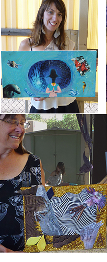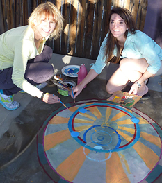 photo above: Alice Dmowski and Rebecca Tarantino work on the logo for the Explorers Club.