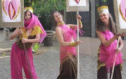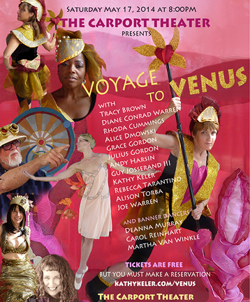if you are not able to view this mp4 file, please see the quicktime version Presented at the Carport Theater This is the third play by Laissez-Faire Productions, and it follows in the magical/humorous vein of the previous two—The Jumblies in 2012, and Dream Stories in 2013. This new production transports the audience, along with a few intrepid explorers, to the planet of love and beauty—and to the enchantments and dangers of the female erotic imagination. Decor, costumes, and props are inspired by George Melies's wonderful 1902 movie, A Trip to the Moon, with an added contemporary "steampunk" edge. The show includes elements of sci-fi, vaudeville, and cabaret—so be prepared for a wild ride!